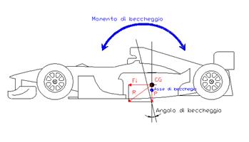 Per trasferimento di carico si intende la variazione delle quote parti del peso gravanti sull’asse anteriore e posteriore del veicolo rispetto alla situazione statica: questo effetto è causato dalle accelerazioni e dalle decelerazioni che si generano durante il moto. In effetti si sposta la retta d’azione della risultante R fra il carico P e la forza d’inerzia Fi: il carico statico rimane infatti costante fra i due assi, mentre la forza d’inerzia, applicata al baricentro, genera un momento rispetto all’asse di beccheggio che carica un’asse e scarica l’altro. Si ha in effetti una rotazione del baricentro la cui entità dipende dalla distanza del baricentro dall’asse di beccheggio, dalla flessibilità del sistema elastico e dal passo del veicolo. Si ricorda che l’asse di beccheggio è quell’asse trasversale al veicolo attorno a cui la scocca ruota durante i movimenti di beccheggio, tale asse si può determinare graficamente in funzione della geometria della sospensione. Gli effetti del trasferimento di carico possono venire valutati con la relazione: