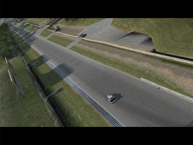 Rettilineo: Usciti dalla chicane siamo all'inizio del lungo rettilineo; qui si scaricano tutte e sei le marce con una velocità di uscita che può superare i 266km/h in scia. Il gioco di scie può giocare brutti scherzi specie se ci si trova alla partenza in un groviglio di vetture. Non sono esclusi, alla staccata, sorpassi sia all'interno che all'esterno (il bello di Blackwood)... Lo spazio c'è. Se la prima staccata e la prima chicane sono stati ben eseguiti, dovremmo aggirarci sui 22 secondi (21 per quelli dannatamente veloci) al primo intertempo registrato all'inizio del rettilineo. |