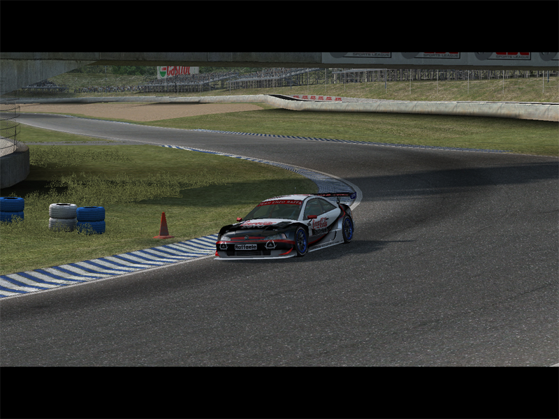 La chicane, uscendo dal tornantino, inizia con una curva a sinistra e segue con un'altra a destra. La parte iniziale a sinistra la si fa uscendo di terza dal tornantino di cui sopra. In questo frangente è fondamentale il colpo di gas ON/OFF ossia lo si toglie totalmente per un attimo, il rilascio di gas deve generare un leggero sovrasterzo che imposta la vettura verso la curva a sinistra della chicane e successivamente verso l'uscita. Si deve riaprire velocemente tutto il gas evitando che la vettura controlli voi puntando le gomme di protezione a bordo curva. |