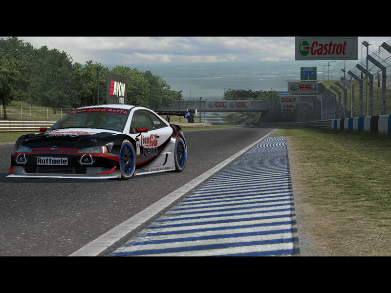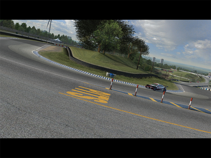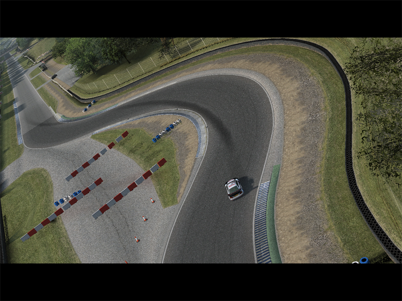 Staccata in discesa, ci avviciniamo al termine del giro ma non possiamo sottovalutare le insidie di questi ultimi tratti. Staccata verso destra, anche qui una percorrenza in leggero sovrasterzo ad oltre 130 km/h sarebbe l'ideale, è fondamentale che in rilascio la vettura tenda a sovrasterzare altrimenti a quella velocità ci ritroveremo nell'erba e giro finito. Anche qui un leggero anticipo della frenata giova al tempo. Brutti vizi come il mio, di staccare tardi portano a volte a dei rallentamenti della velocità di percorrenza della curva con una perdita in questo settore anche di 3 decimi. |
